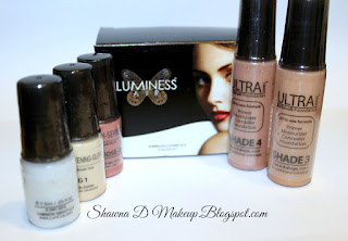 Pros- Luminess Air foundations are Mineral and water based so, that means no clogged pores and it's great for sensitive skins. The Ultra foundation is very beautiful and is very buildable. You will see in the photos below how I start off with a light coverage and build to medium then, full coverage. It really covered all of my sun damage skin, redness and blemishes as you can see below. I looked flawless in the final pics (the images are not edited in anyway except being cropped and watermarked) The colors are very nice and very much look like natural skin tones. I would like to see more. I actually match Shade 3 foundation perfectly.